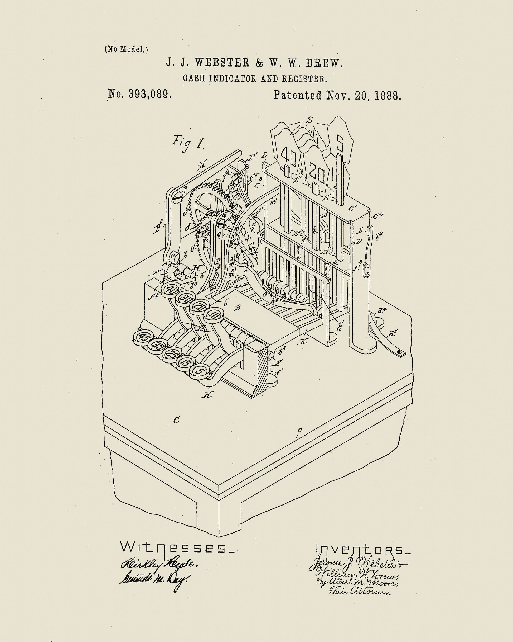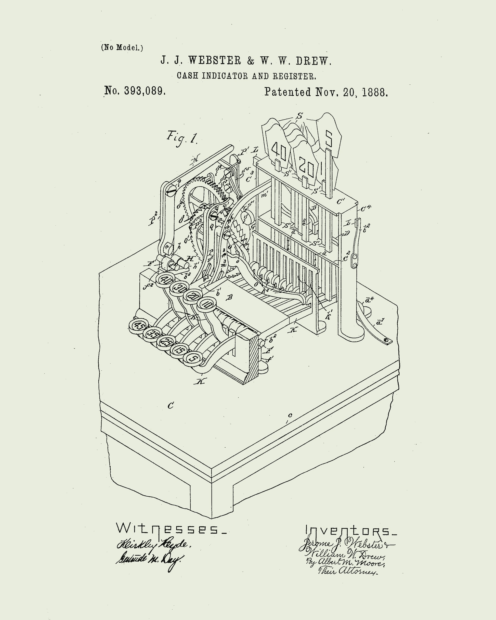 1888 Cash Register Vintage Patent Print