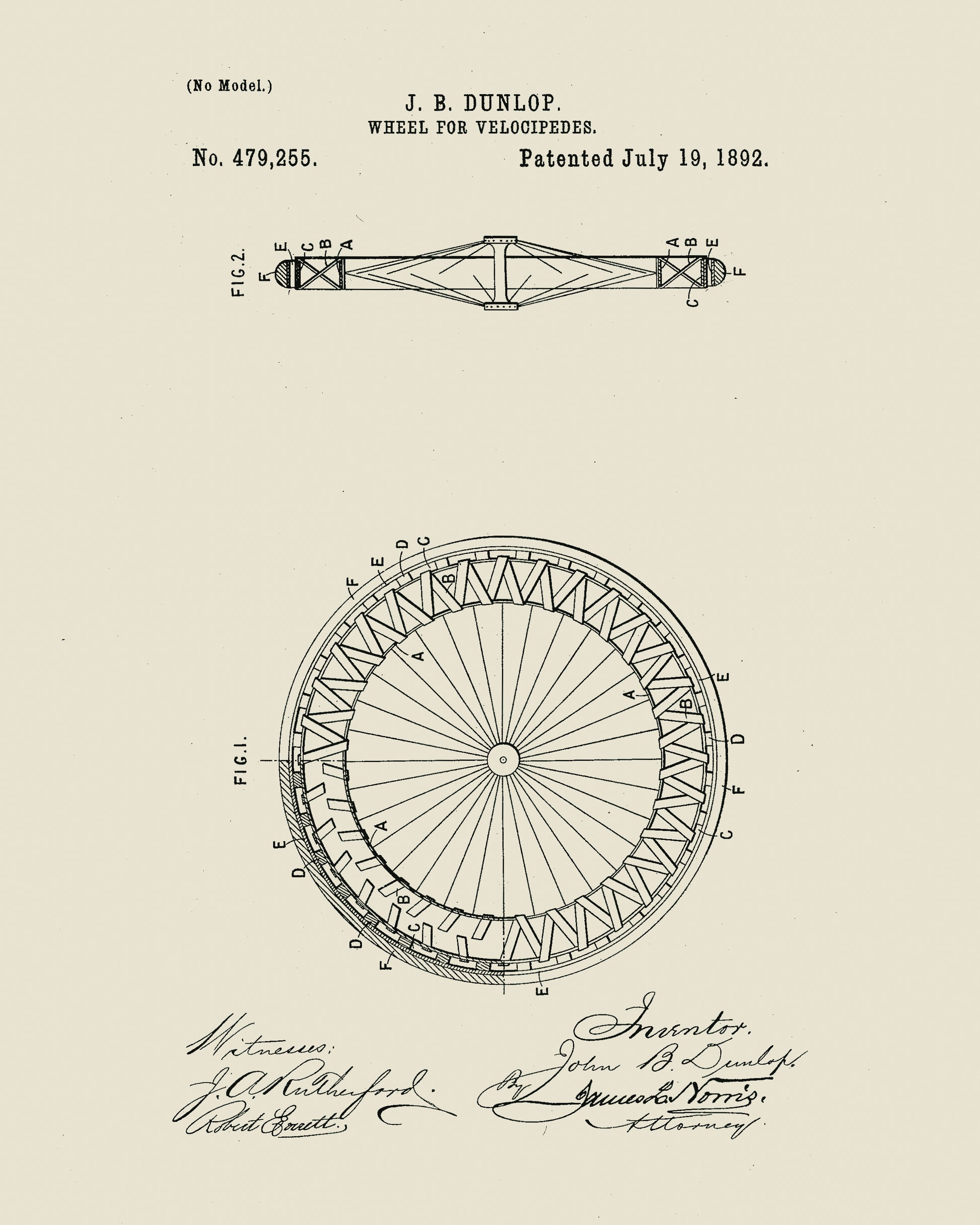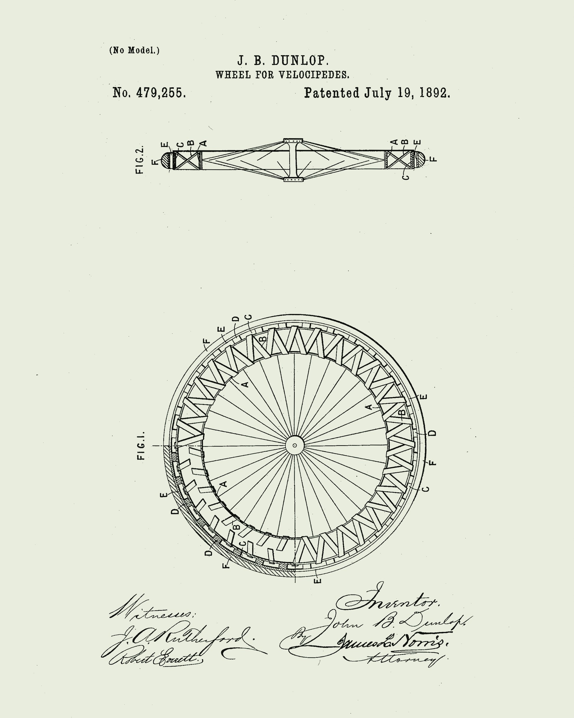 1892 Dunlop Bike Wheel Vintage Patent Print